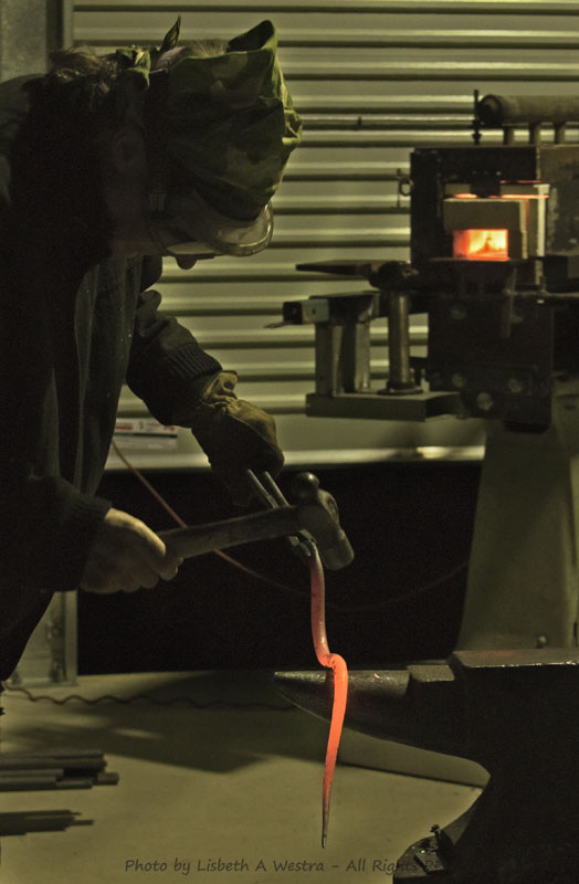 My main studio workshop is based in Moruya on the South Coast of NSW. The metal is first heated in a forge fire to a temperature of around 1,100 degrees Celsius (a nice white hot colour mmmm) Once hot, the metal takes on a much more ductile and malleable state. It is then forged to shape using various black smithing tools of hammers, anvils, tongs and bending forks. As the metal cools rapidly when removed from the forge, the heating and shaping process is repeated many times until the ideal shape has been sculpted. The individual parts are welded together and smoothed with an angle grinder. Various materials are used, including mild steel, stainless steel, copper and bronze. Final finish is done with polishing, natural patinas, powder coating or acrylic resin. |